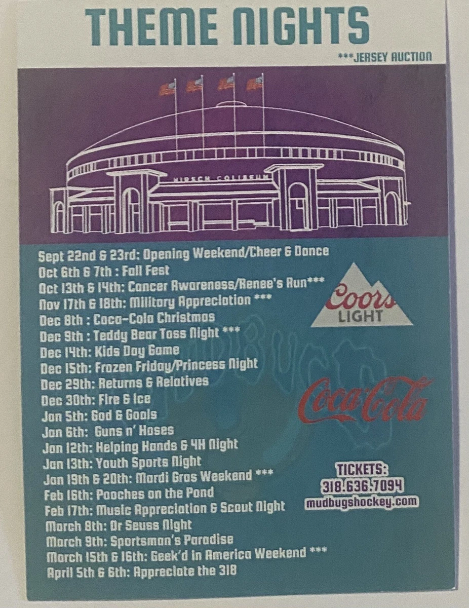 Source : www.instagram.com2023 2024 SHREVEPORT MUDBUGS Schedule 🏒 Minor Hockey Sked 🏒 | eBay